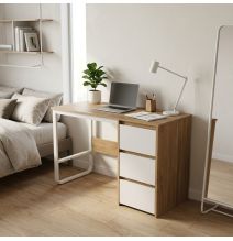 159,90 €Transforma tu espacio de trabajo con este escritorio de oficina moderno con cajones, diseñado para ofrecer la combinación perfecta de funcionalidad, resistencia y estilo en cualquier entorno.Su diseño limpio, elegante y contemporáneo lo convierte en la opción ideal tanto para oficinas profesionales como para uso doméstico, adaptándose perfectamente a zonas de estudio, teletrabajo o habitaciones juveniles.Fabricado con tablero de alta calidad (MDF y aglomerado) y recubrimiento en melamina, este escritorio ofrece una superficie resistente al uso diario, duradera y fácil de limpiar, perfecta para un uso intensivo sin preocupaciones. Además, su estructura metálica en color blanco aporta una excelente estabilidad y robustez, garantizando un producto sólido y fiable a largo plazo.Uno de sus grandes puntos fuertes es su almacenaje integrado, con 3 cajones amplios que permiten mantener el espacio ordenado y todos tus accesorios, documentos o material de trabajo siempre a mano.Los cajones incorporan guías metálicas de alta calidad, que aseguran una apertura y cierre suaves, cómodos y duraderos, mejorando la experiencia de uso día a día.Disponible en combinaciones de color modernas y versátiles, este escritorio no solo es práctico, sino que también aporta un toque actual y sofisticado a cualquier estancia.Diseñado para ofrecer una gran resistencia y larga vida útil, es una solución perfecta si buscas un escritorio funcional, robusto y preparado para el uso diario.